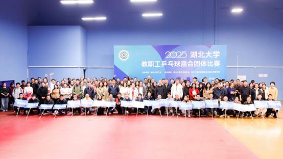 10 月 13 日,湖北大学 2025 年教职工乒乓球混合团体比赛举行开幕式,校党委副书记、工会主席侯勇出席并宣布比赛正式开始。经过为期八天的激烈角逐,赛事于 10 月 22 日下午在热烈的掌声与欢笑声中落下帷幕。闭幕式上,工会常务副主席金梅、体育学院院长张春合等为获奖队伍颁发了奖杯。