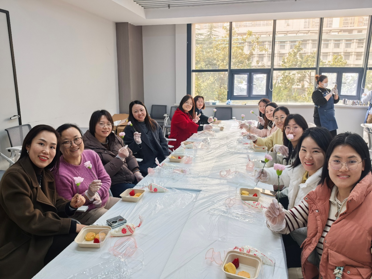 在轻松愉悦的制作过程中,活动还穿插了关于“三八国际妇女节”历史来源的分享。老师们在享受手作乐趣的同时,也重温了这个属于全世界女性节日的深刻内涵与历史意义,进一步增强了作为新时代女性的自豪感与使命感。